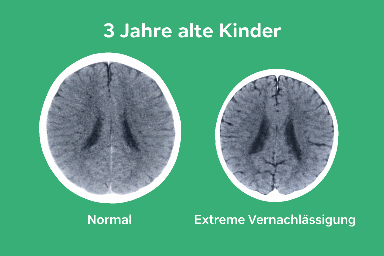 - Rechts sieht man das deutlich kleinere Gehirn eines Kindes, dem Liebesentzug und Vernachlässigung widerfahren sind.
